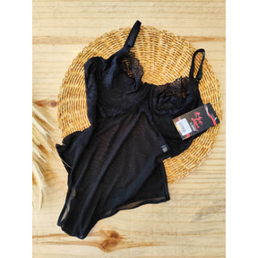Body sensual com detalhes em tule, possui aro, com abertura higiênica, elegante para qualquer ocasião
