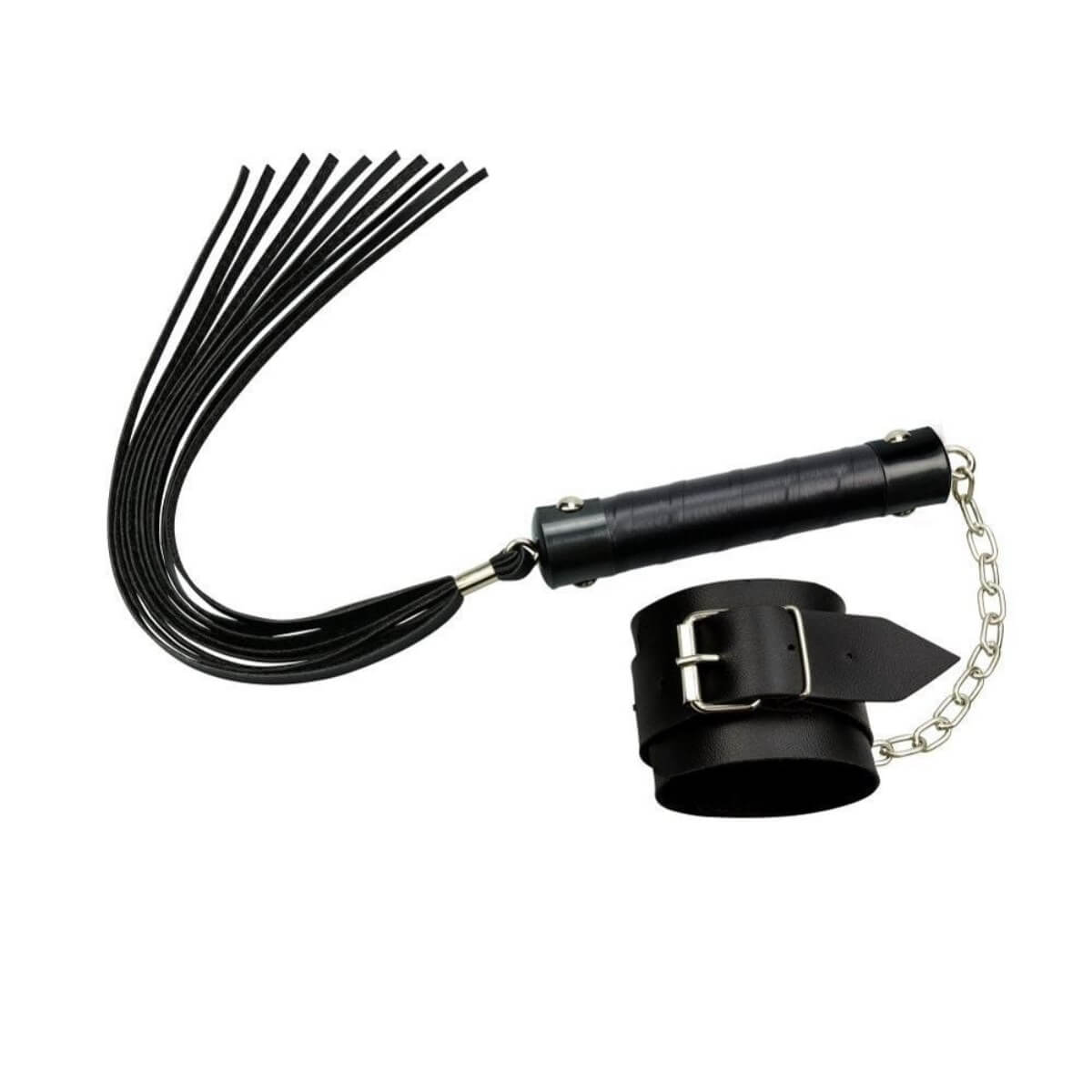 O Chicote possui 10 tiras confeccionadas artesanalmente em material semelhante à couro, resistente, flexível e com impacto confortável ao corpo. Para ajudar durante o uso há uma pulseira para que não caia da mão, feita no mesmo material e seu revestimento interno é em material aveludado. Ajustáveis e reguláveis de acordo com suas medidas para garantir maior conforto. Possui detalhes de cincolas, corrente, fecho e travas em metal niquelado que garantem qualidade e durabilidade. Seja criativo, realize seus maiores fetiches e domine seu parceiro!