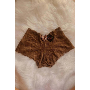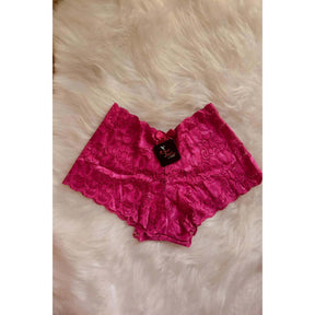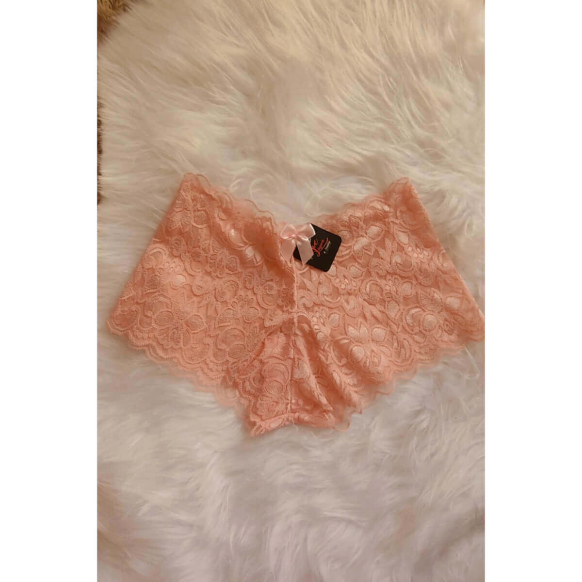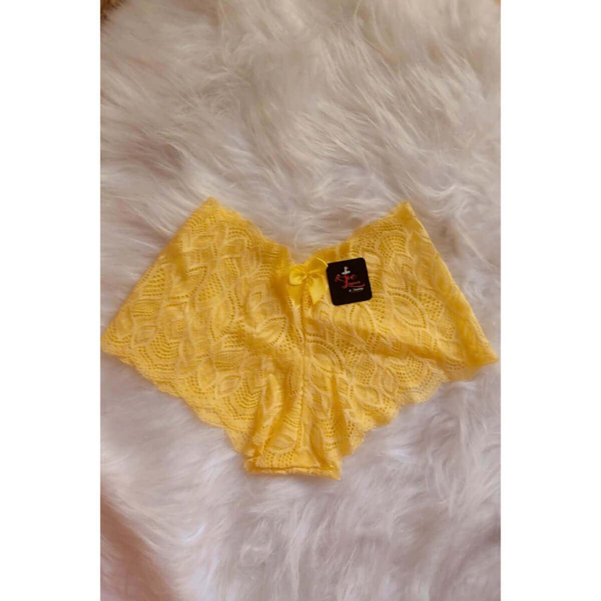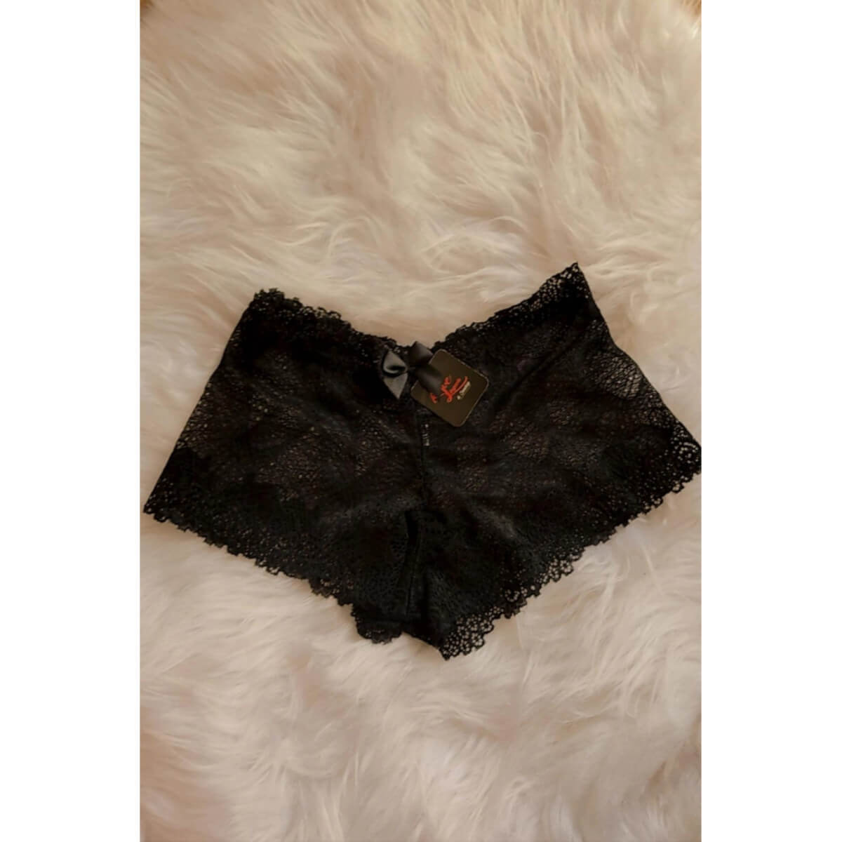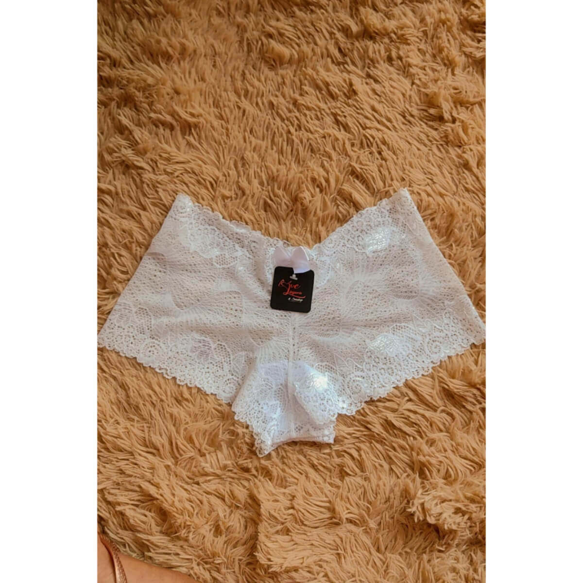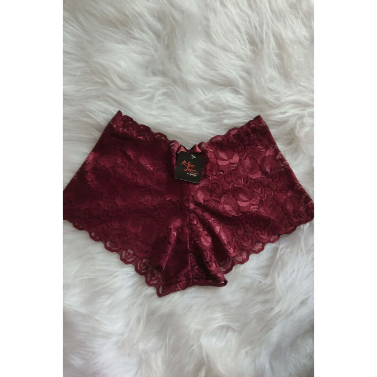 Confeccionada em renda, essa linda calcinha no modelo caleçon possui a cintura média e forro de algodão.