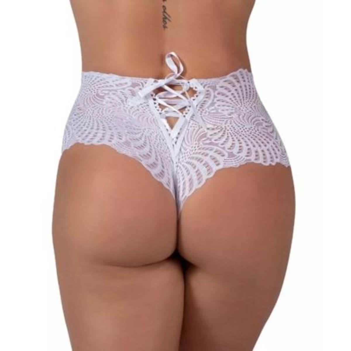 Calcinha gladiadora confeccionada em renda francesa, forro 100% algodão, e lindo detalhe de fita cetim trançada na parte de trás.