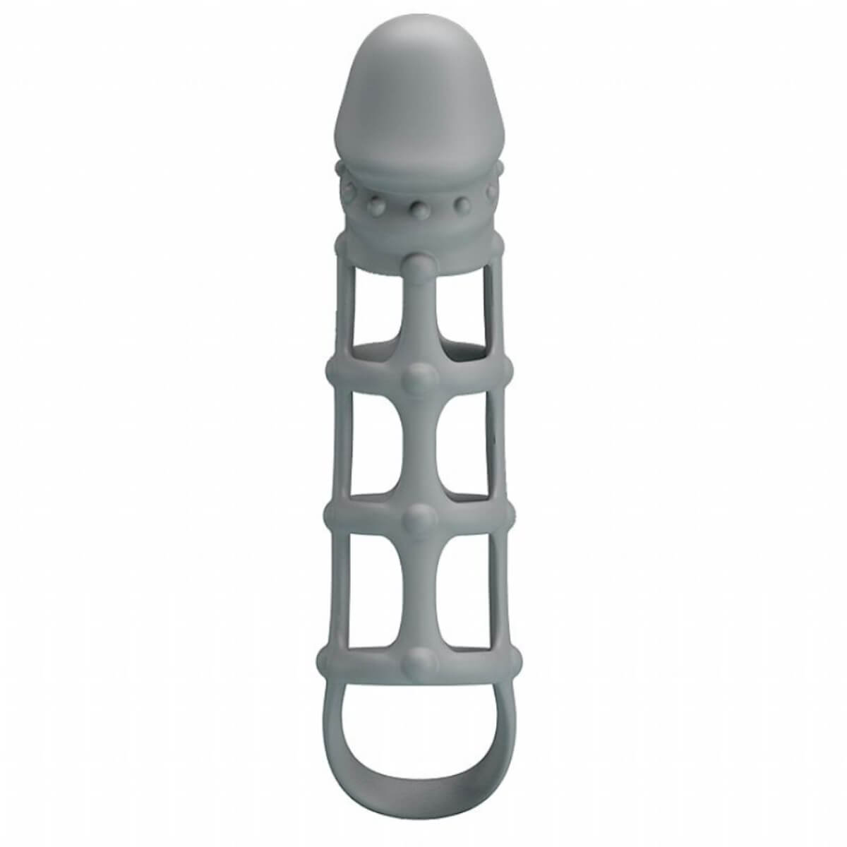 Capa peniana extensora com anel para escroto, feita em silicone, que proporciona um maior prazer, à prova d'água.