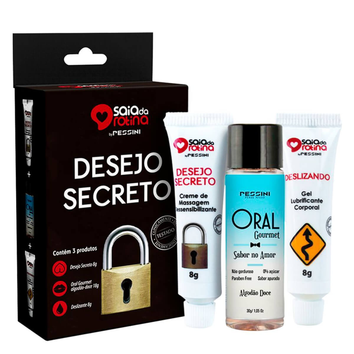 O kit Desejo Secreto é uma ótima escolha para aquele seu momento de prazer com seu amado(a), uma coleção de produtos que vão te levar ao seu delírio mais intenso, oferecendo também funções incríveis.