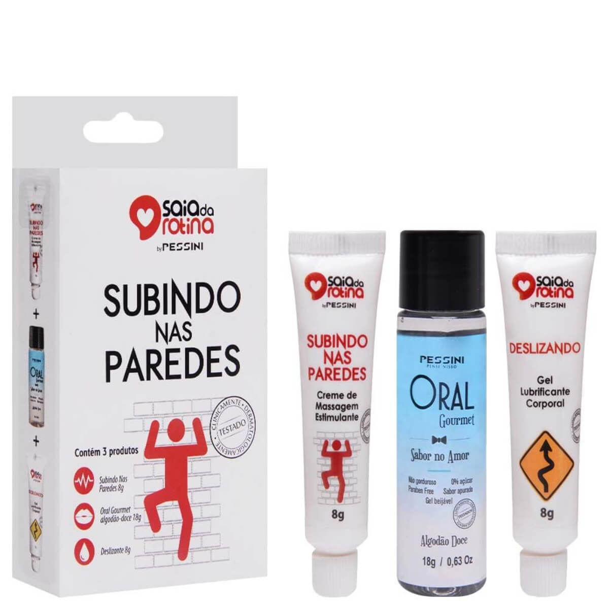 O kit Subindo Pelas Paredes é a escolha perfeita para aquela sua noite romântica e cheia de surpresas, essa coleção é a pedida certa para te proporcionar seu prazer tão buscado, pois ele contém produtos funcionais essenciais para ápice, funções que te levarão ao delírio.