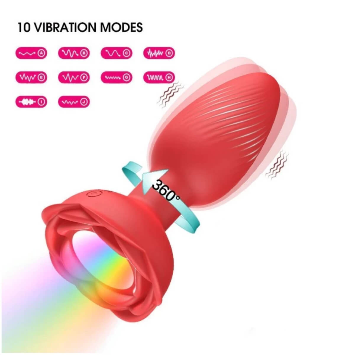 Plug Anal com Vibro Formato Rosa 10 Vibrações Ref.7763