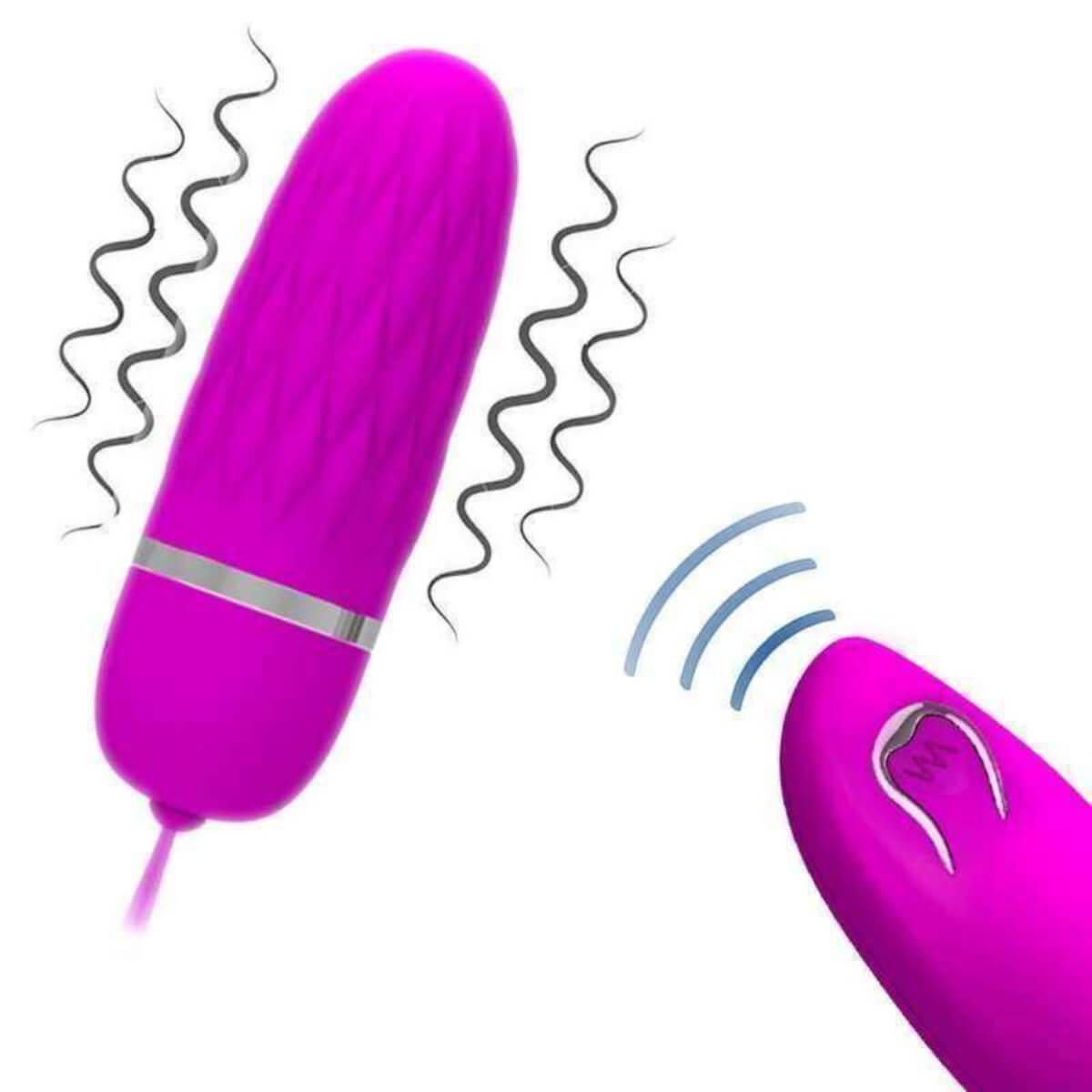 É um bullet com 12 modos de vibração controlados por controle remoto sem fio, confeccionado em silicone macio e suave ao toque, possui textura de estrias por todo seu corpo e alça de segurança além de ser resistente à água.