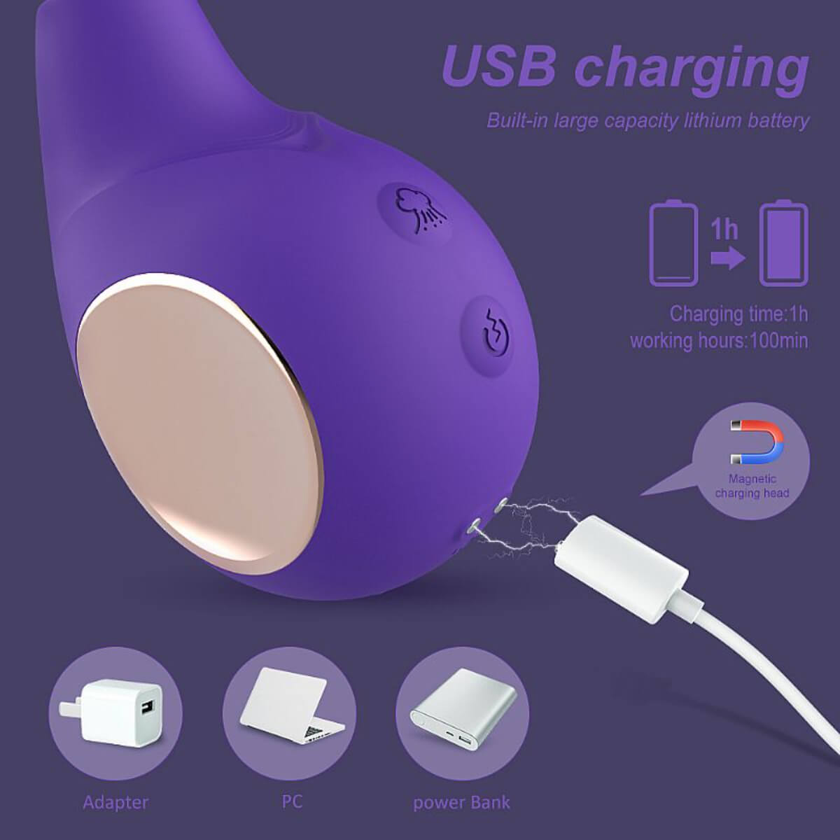 Recarregável via USB.